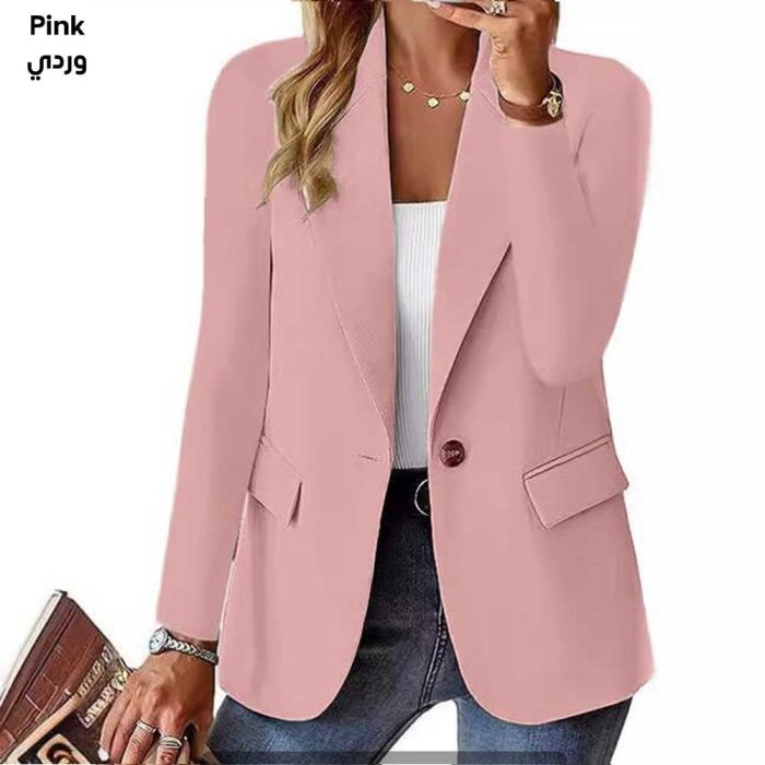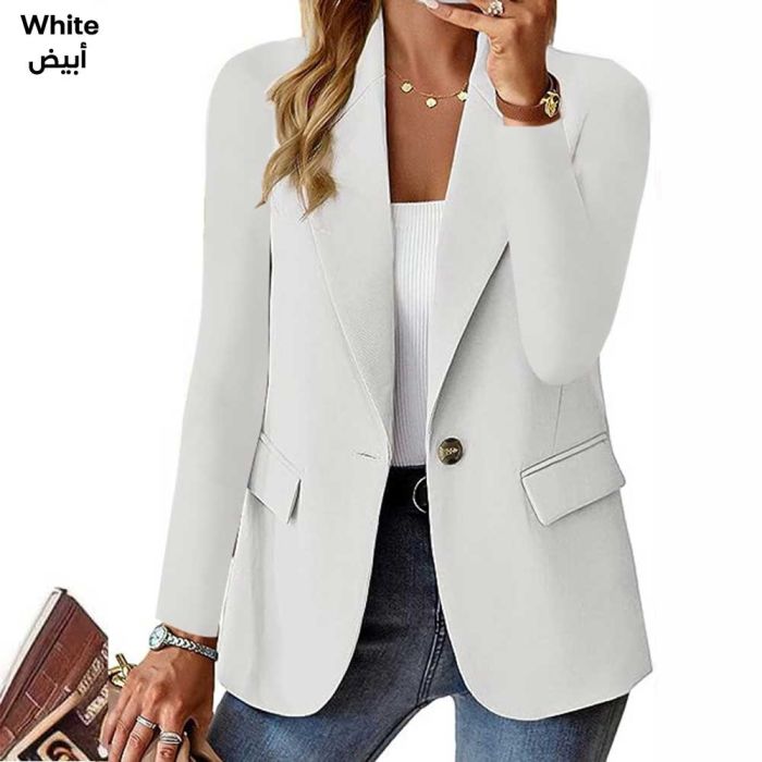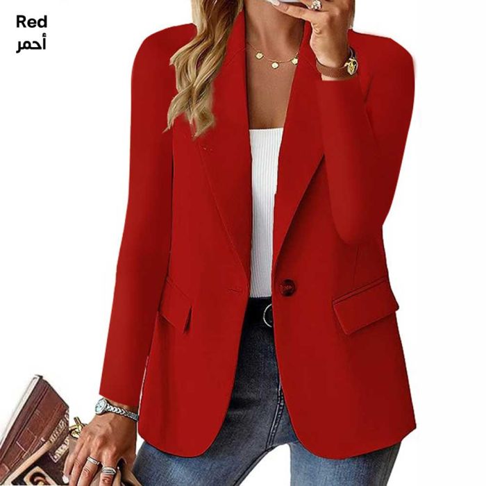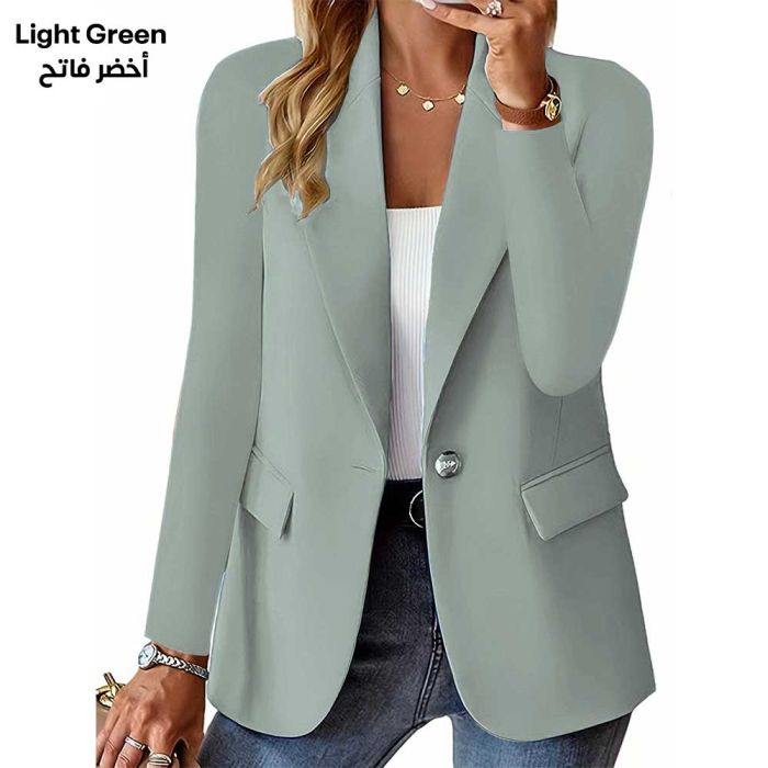 - Solid Color Long-Sleeve Blazer Jacket for Women