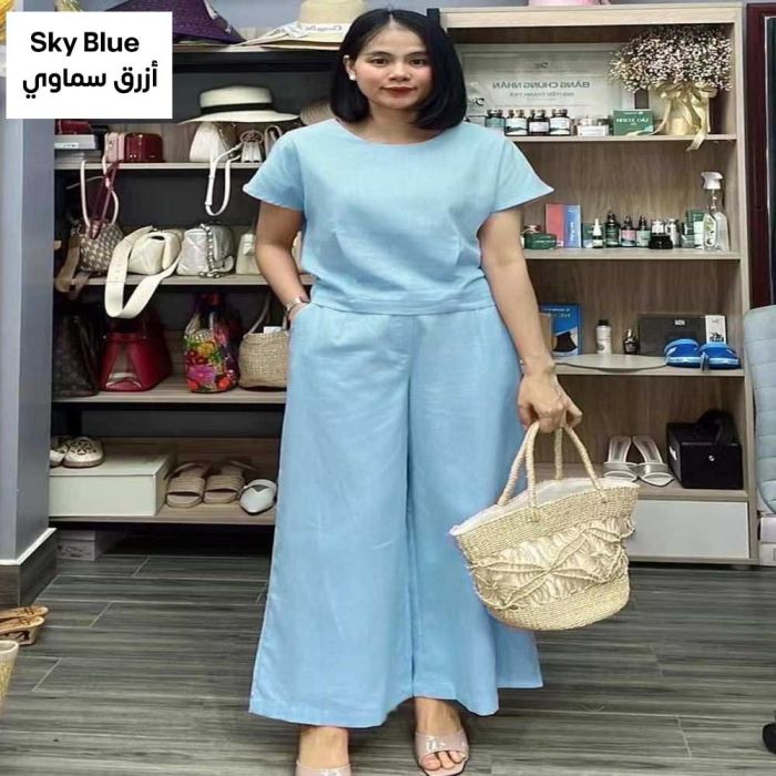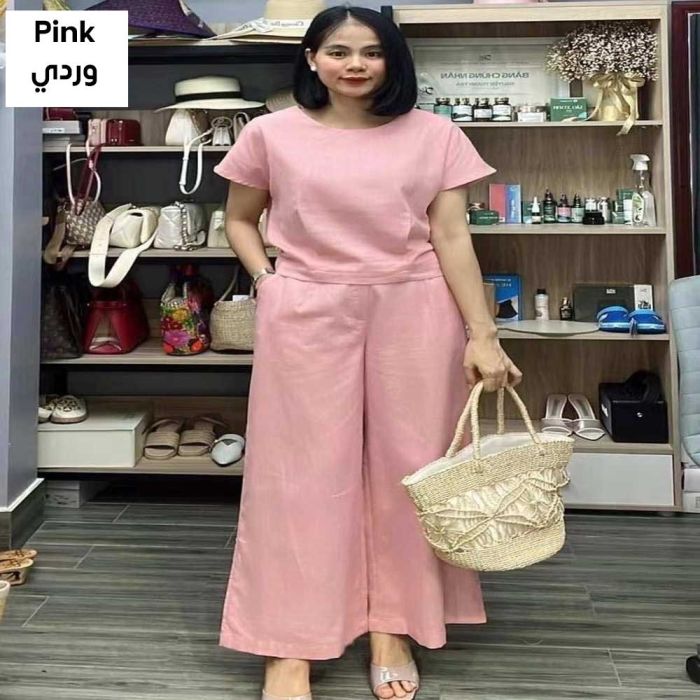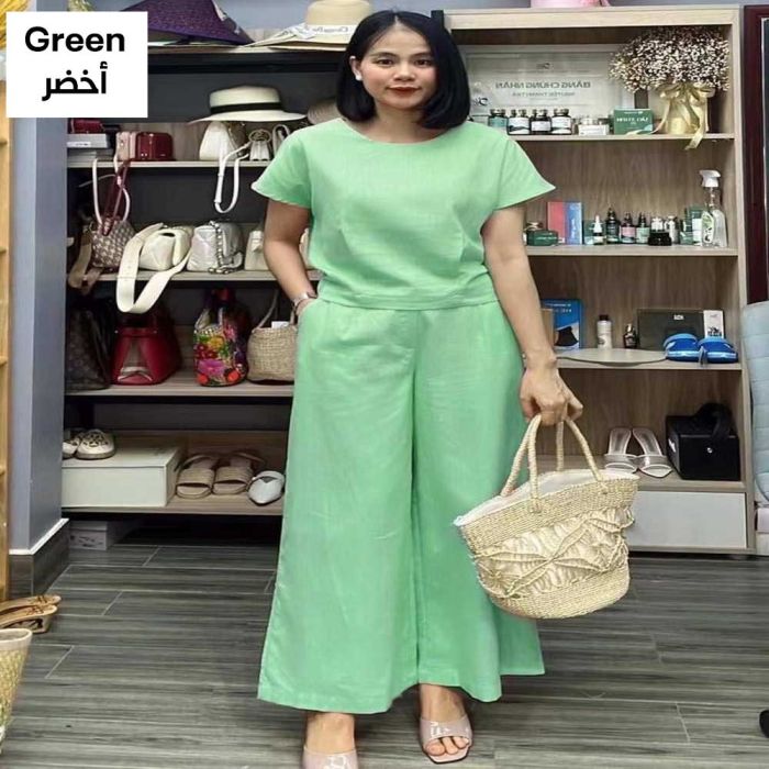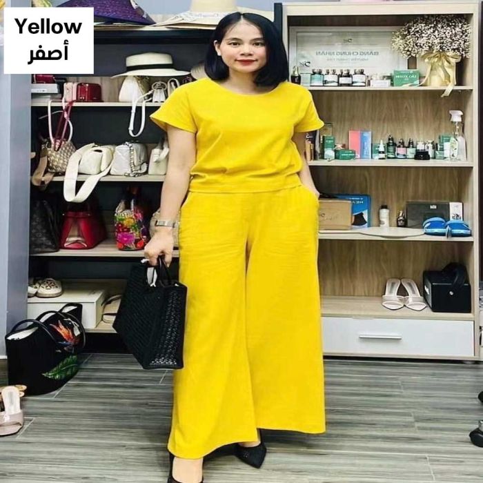 This Elegant, Plain, Short-sleeved Women's Set Made from Soft, Flowy Fabric. Featuring a Stylish Two-piece Design, It's Comfortable, Versatile, Flexible, and Supportive, Providing a Complete and Attractive Look While Maintaining Its Quality and Elegant Shape. It's an Excellent Choice for a Quick and Stylish Look.