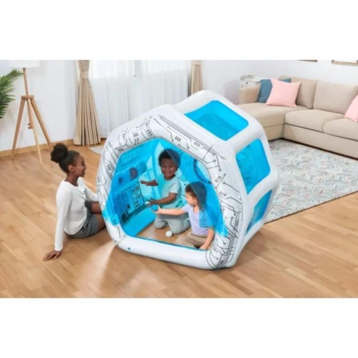 Fulfill your child's space exploration dreams with the Bestway Inflatable Playhouse. Inspired by a space station, this playhouse stimulates imagination and encourages group play. It includes 6 play balls and a sorting toy on the side, developing motor skills, for a safe and fun play experience for children aged 2 and up.