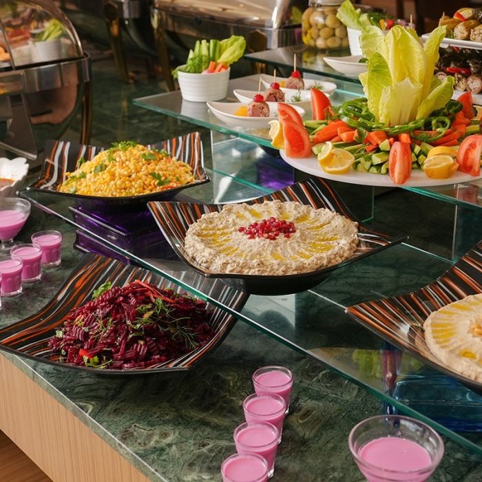 Buffet includes: Main Dishes, Appetizers, Salads, sweets, Ramadan drinks.