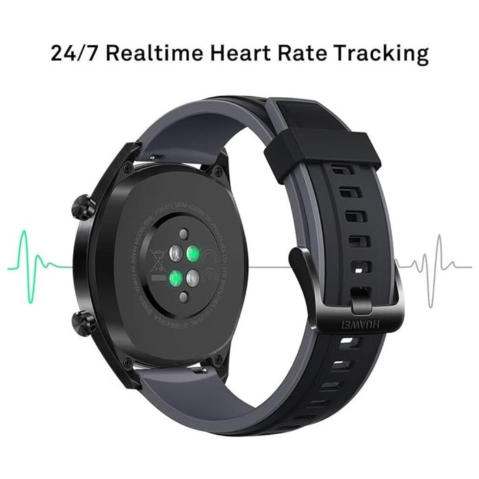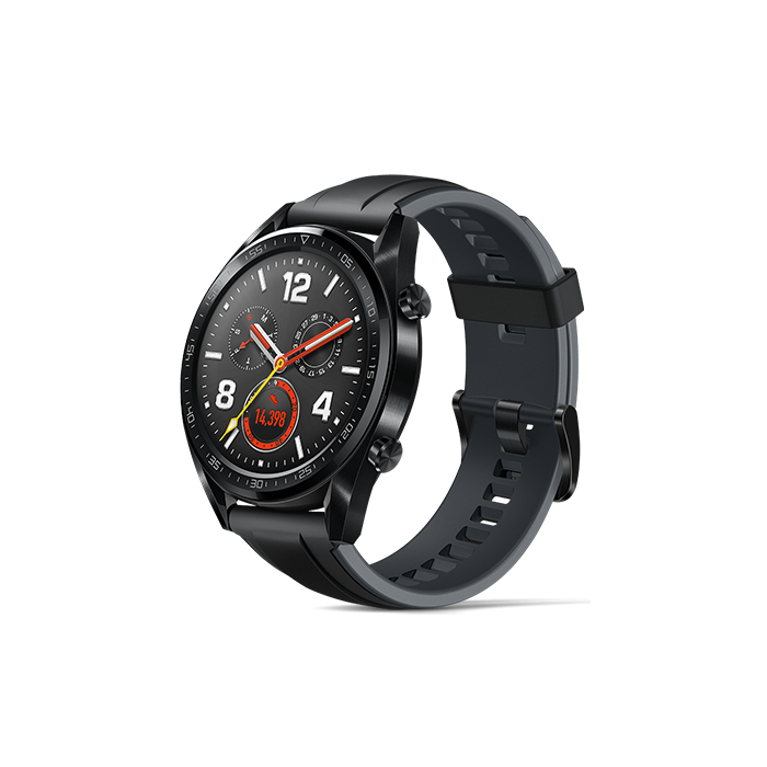 Enjoy powerful performance and elegant design with the Huawei Watch GT Sport featuring a graphite black rubber strap. It boasts a 1.39-inch AMOLED display readable in sunlight and a battery life of up to two weeks. With 5ATM water resistance and multi-system GPS support, it ensures accurate tracking anywhere. Advanced features include real-time heart rate monitoring, sleep tracking, and multiple sport modes — making it your perfect fitness and everyday companion.