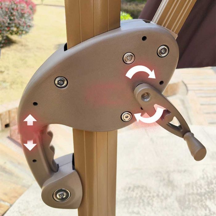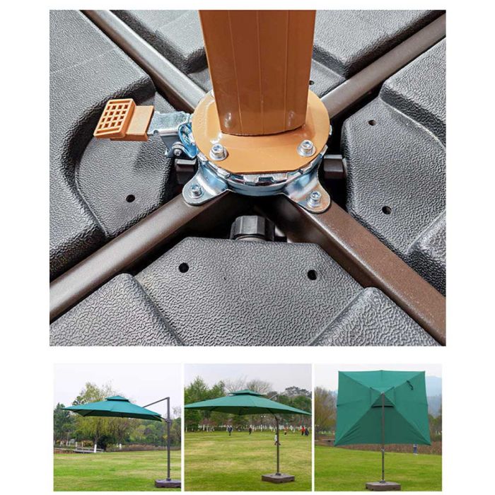 This square outdoor umbrella with solar LED lighting is made from durable materials that provide comfortable shade and sun protection, using solar lighting to create a warm nighttime ambiance, featuring strong stability and a luxurious design that enhances outdoor spaces.