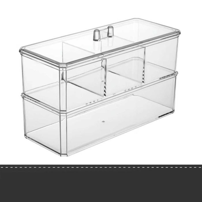 - 2Pcs Stackable Transparent Makeup Organizer with Lid