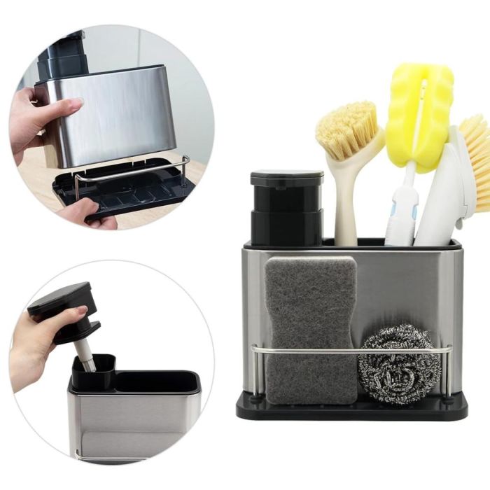 - Stainless Soap Dispenser Kitchen Sink Organizer 15 x 10 x 20 cm