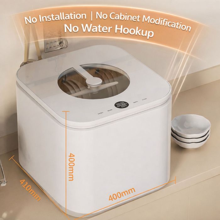Say goodbye to handwashing with this compact, portable countertop dishwasher. Designed for convenience and efficiency, this semi-compact, countertop dishwasher is ideal for small kitchens, dorm rooms, apartments, or hotel rooms. With its powerful 800W motor and high energy efficiency, it delivers a deep clean while saving water and electricity.