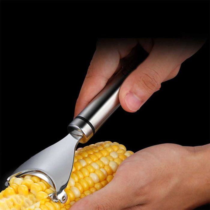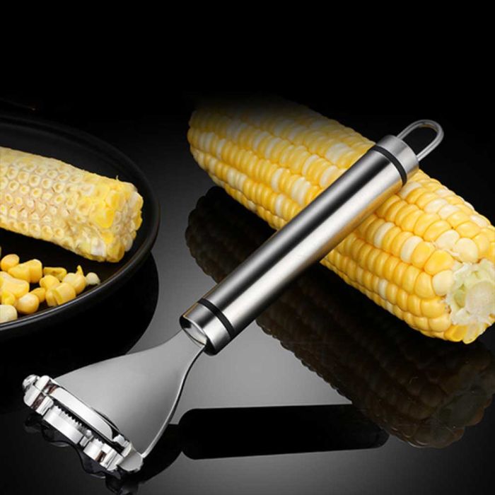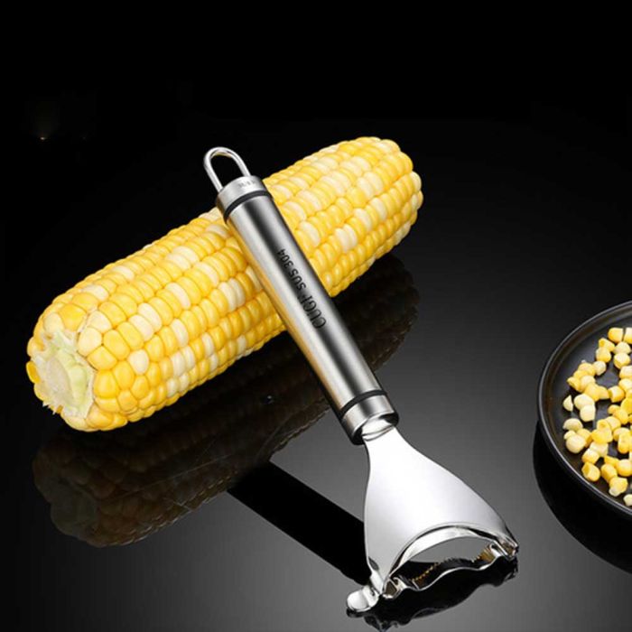This stainless steel corn peeler is crafted from high-quality materials to ensure durability and efficiency. It allows you to remove corn kernels easily and quickly, thanks to its smart and ergonomic design, making it an ideal tool for the modern kitchen. It combines high performance with ease of use, saving you time and effort in preparing your favorite meals with utmost ease and convenience.