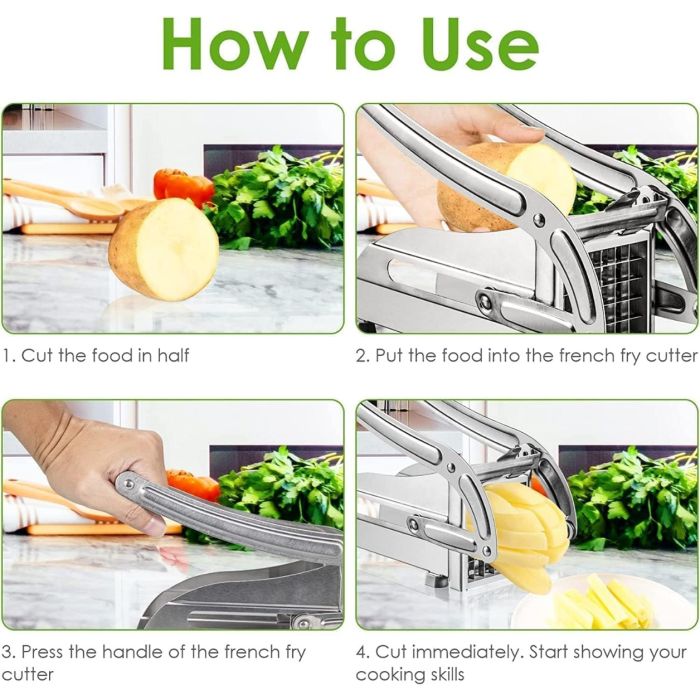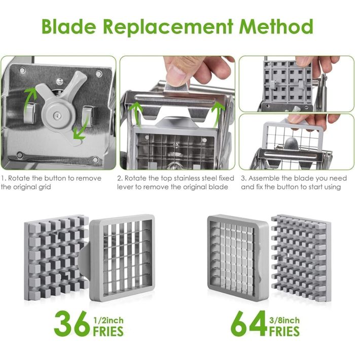 Stainless Steel French Fry Cutter with 2 Interchangeable Blades
