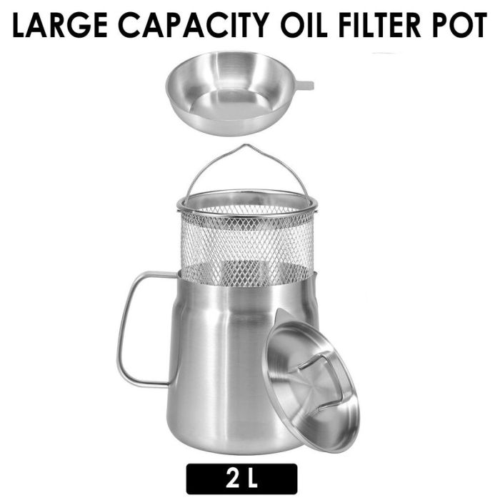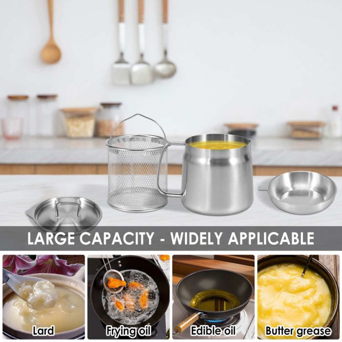 This versatile pot features a built-in strainer and dustproof lid, ensuring clean and reusable oil. Its durable, food-grade stainless steel construction and ergonomic design make pouring easy, while its multifunctional use allows for small-batch frying.