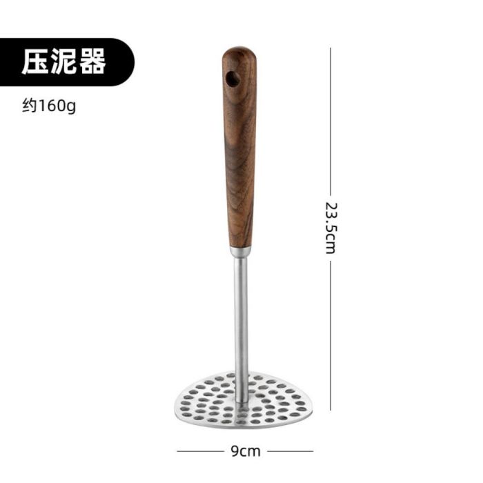 - Stainless Steel Potato Masher with Wooden Handle 23.5 × 9 cm