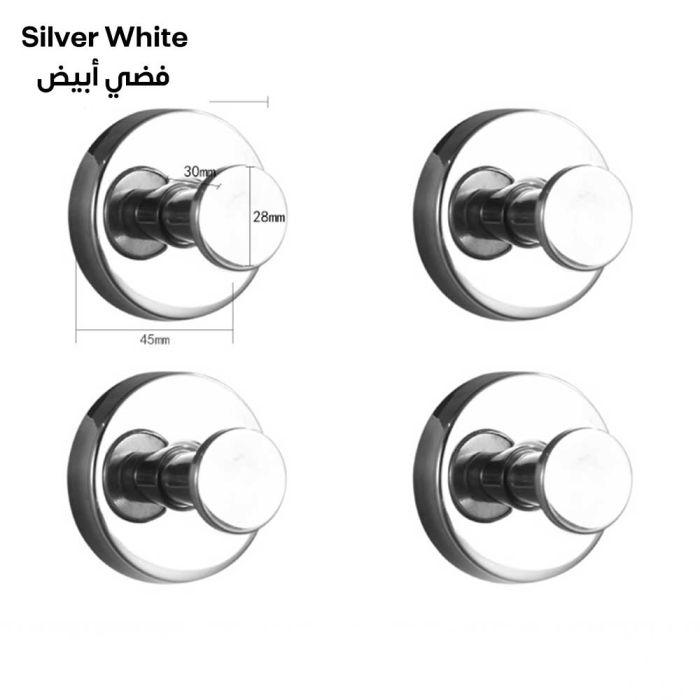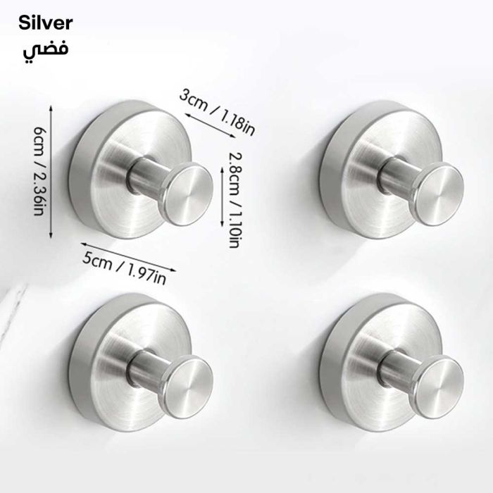 - Stainless Steel Suction Cup Hooks Set of 4 Pieces - Silver
