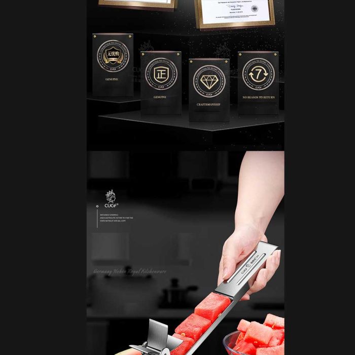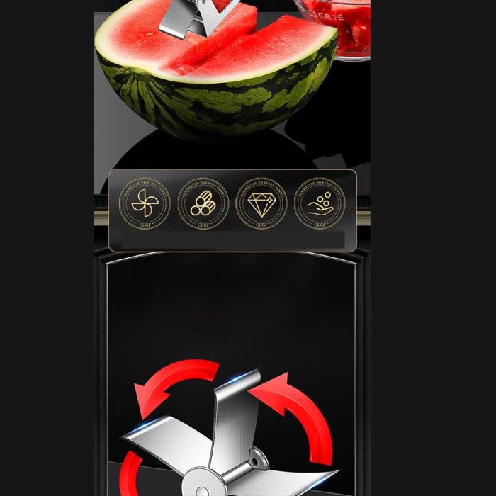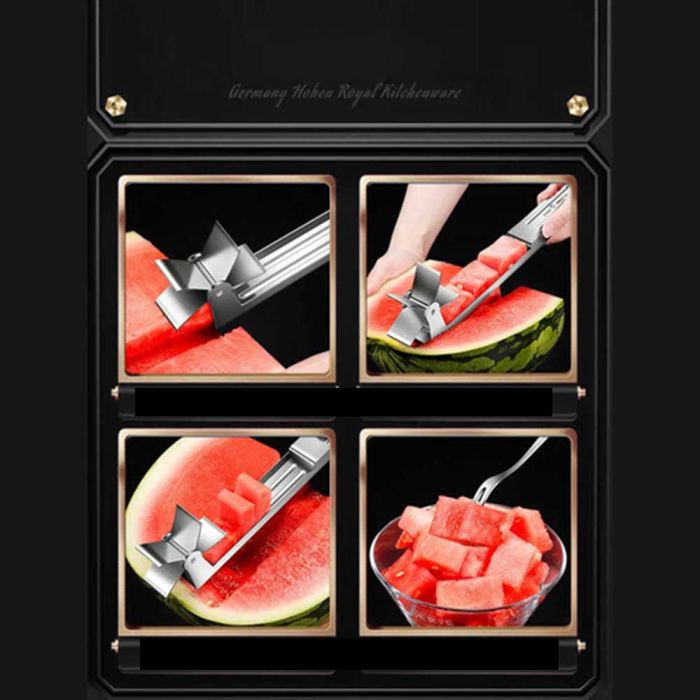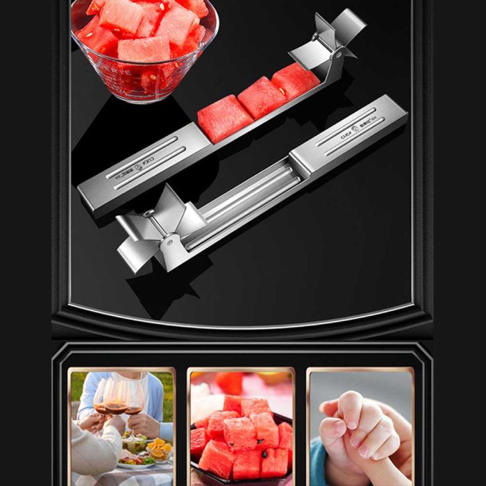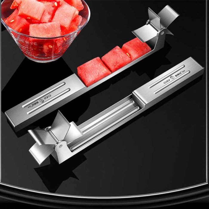 This stainless steel watermelon slicer is crafted from high-quality materials to ensure durability and efficiency with every use. It offers you a smooth and quick slicing experience thanks to its smart design that guarantees comfort and safety during use. Perfect for preparing fresh fruits easily and swiftly to meet your daily kitchen needs without hassle or mess.