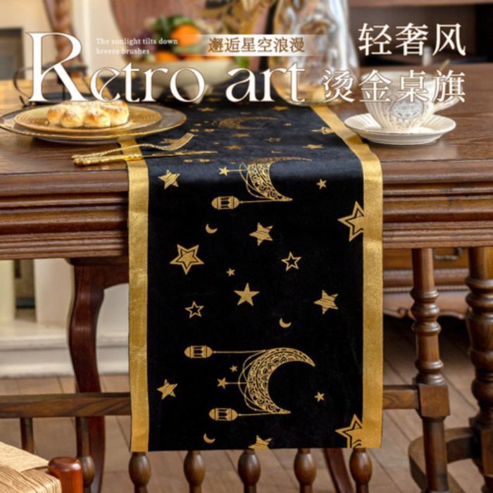 - Star and moon patterns with golden accents that create an attractive festive atmosphere
