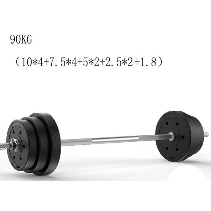 - 90 kg: 10 kg ×4, 7.5 kg ×4, 5 kg ×2, 2.5 kg ×2