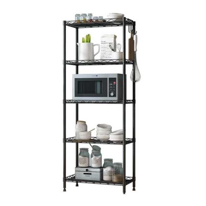 This Kitchen Organizer Rack 5 Layers is made of durable carbon steel, featuring a multi layer design that provides clear organization and easy access, with a stable structure for daily use, suitable for kitchens and also ideal for living rooms, storage areas, or balconies