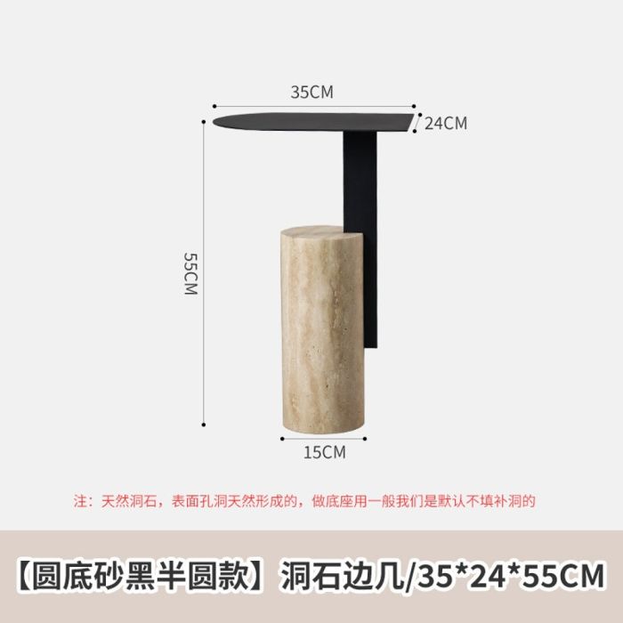 - Steel Side Table with Round Stone Base 35 × 24 × 55 cm