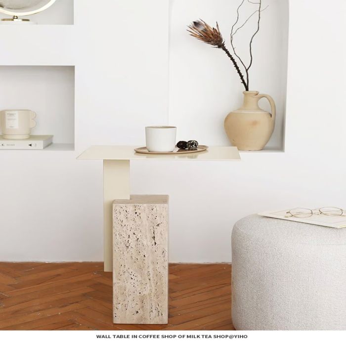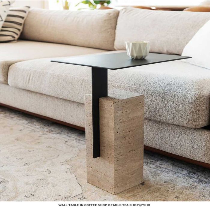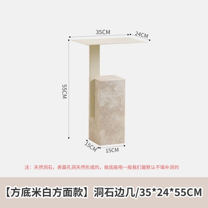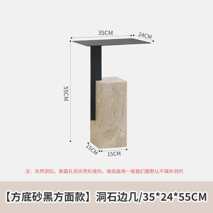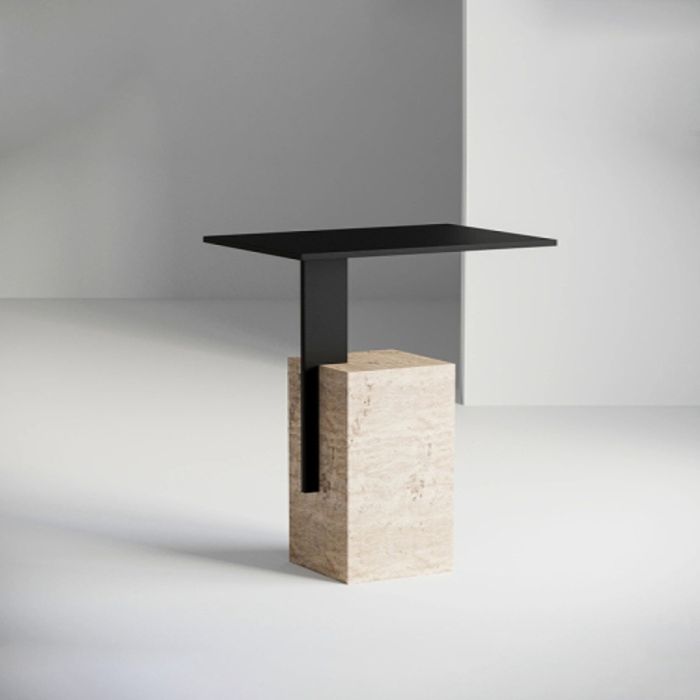 - Steel Side Table with Square Stone Base 35 × 24 × 55 cm