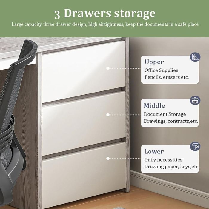 Turn your office into an organized area for study or work, this desk features a spacious surface and 3 drawers for practical storage solutions, constructed with thick steel panels and a stable base that fits daily use