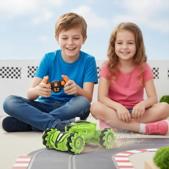 Bring the excitement of stunt racing home with a remote controlled car made to flip, spin, and race with high energy on every run. Built for indoor and outdoor play, it handles different surfaces so kids can take the action from the living room to the backyard without slowing down. Bright LED lights add extra wow during play, while the durable body is designed to keep going through bumps and crashes. A fun, skill building toy for ages 6+ that encourages coordination, confidence, and imagination.