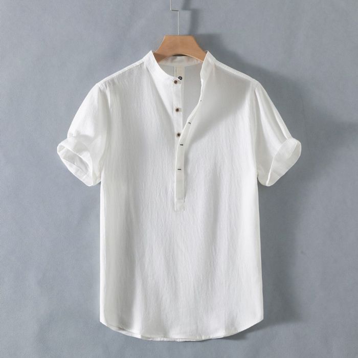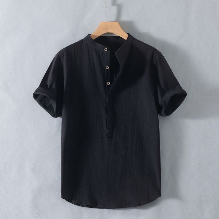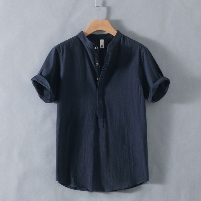This Men's Cotton Linen Elegant Collar Shirt is Made from a Light and Refreshing Cotton and Linen Blend, Featuring a New Chinese Design and a Loose Plain Top, Perfect for Comfortable Summer Looks, for Ultimate Comfort and a Stylish Appearance.