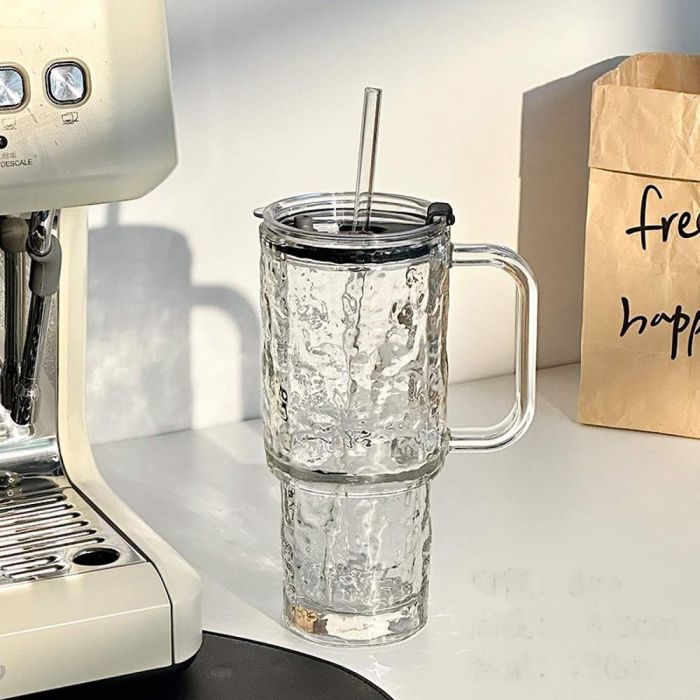 This stylish glass cup with handle and lid is designed for comfort and convenience. The durable glass keeps drinks fresh, the handle offers a secure grip, and the lid prevents spills. Suitable for coffee, tea, or juice, it’s perfect for home, work, or travel. Reusable and easy to clean, it’s both eco-friendly and elegant.