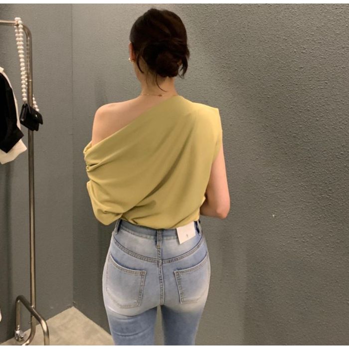 - Summer Korean Style Plain Short Sleeve Blouse For Women