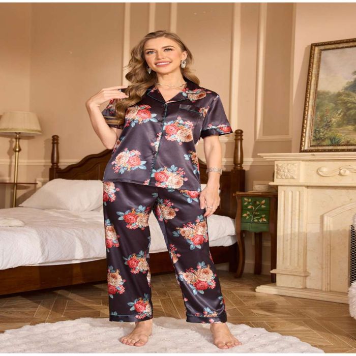 This Women's Summer Set Is Crafted from Premium Materials for a Fresh, Comfortable Feel Ideal for Hot Weather. This Set Features a Sleek, Modern Cut That Exudes Refined Taste, with a Stand-up Collar That Adds a Touch of Professional Elegance to Your Home or Outdoor Look. It Also Maintains Its Quality Even After Repeated Washing, Making It an Ideal Choice for Comfortable Everyday Wear.