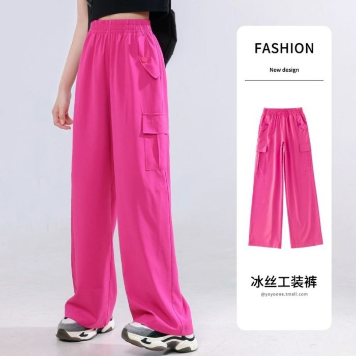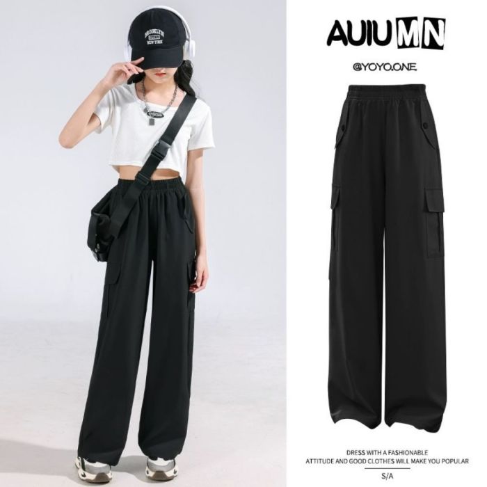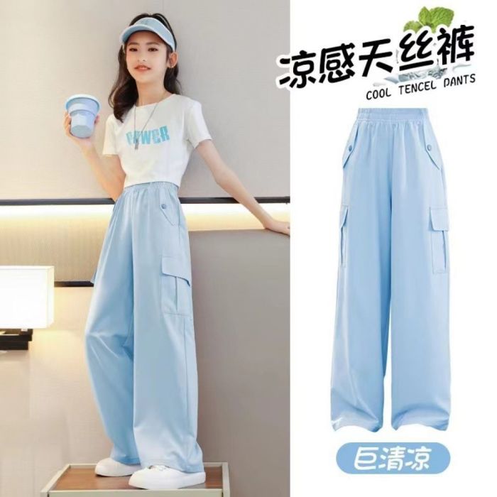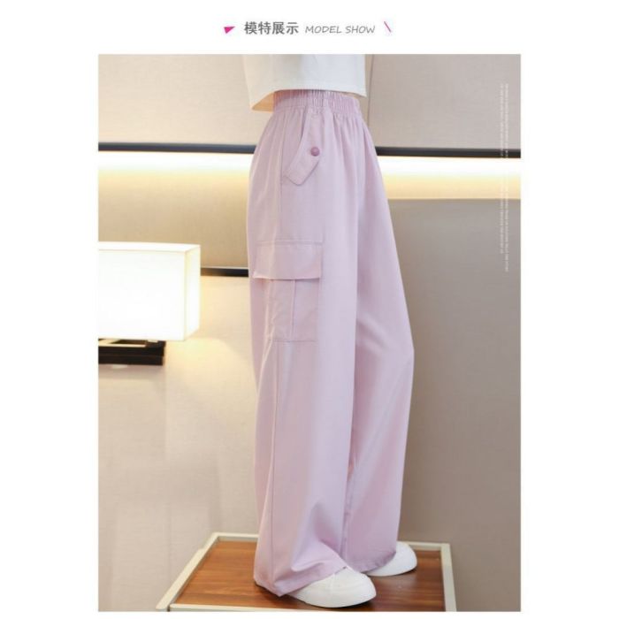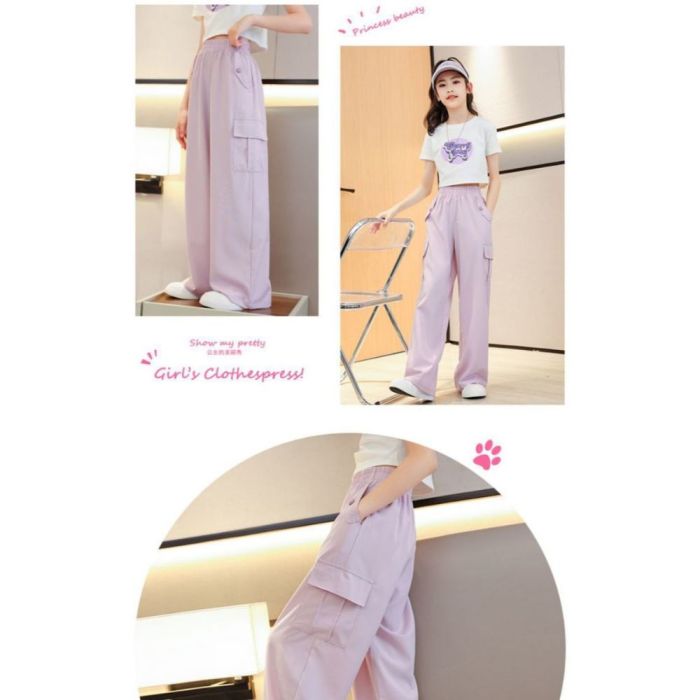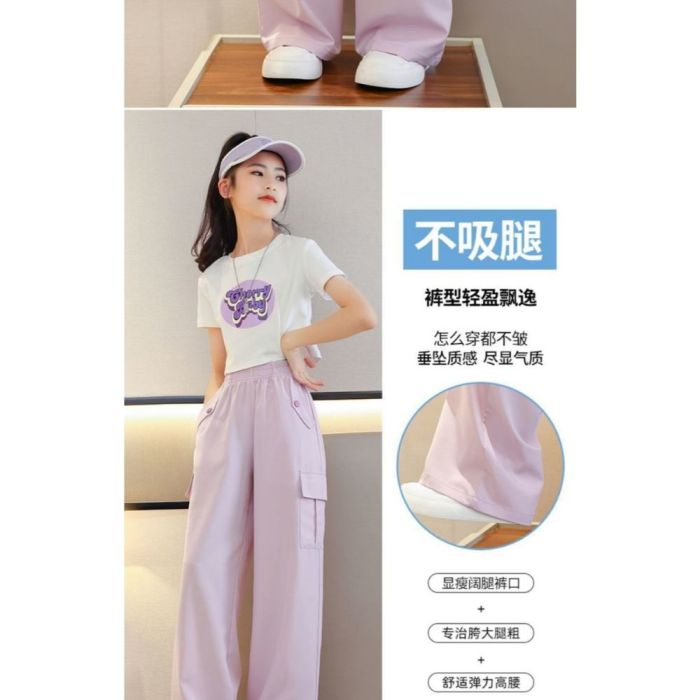 This Summer wide-leg pants for girls made from lightweight and soft fabric, featuring a comfortable design that provides good breathability and a cool feel, suitable for hot weather and daily wear, gentle on the skin and maintains its quality