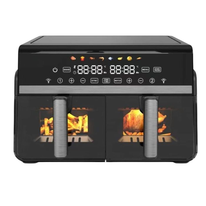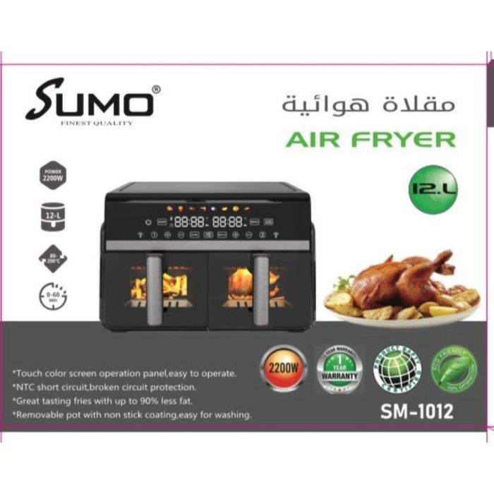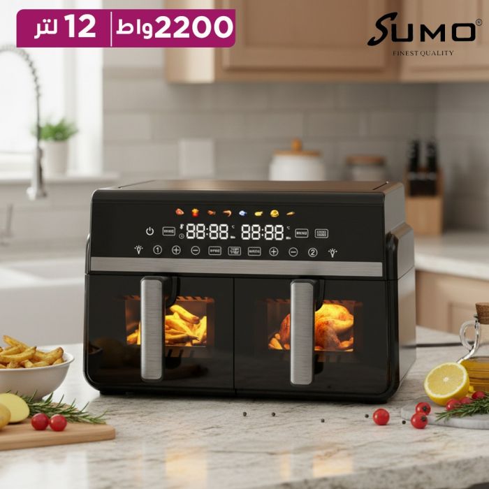 Take your cooking to the next level with the giant 12-liter, 2200-watt Sumo air fryer. Designed for large families and your guests, this fryer allows you to cook generous quantities of healthy and delicious food in one go. The digital display ensures ease of use and complete control over the cooking process, and the massive power delivers quick and perfect results. Enjoy preparing a variety of dishes, from grilled chicken to crispy vegetables, with ease and convenience with the powerful Sumo.