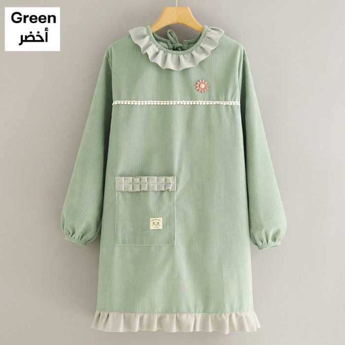 This elegant kitchen apron for women is made of durable materials that effectively protect your clothing from stains, this cover features long coverage to ensure complete protection and superior comfort while working at home, making it ideal for maintaining its quality and beauty during kitchen tasks.