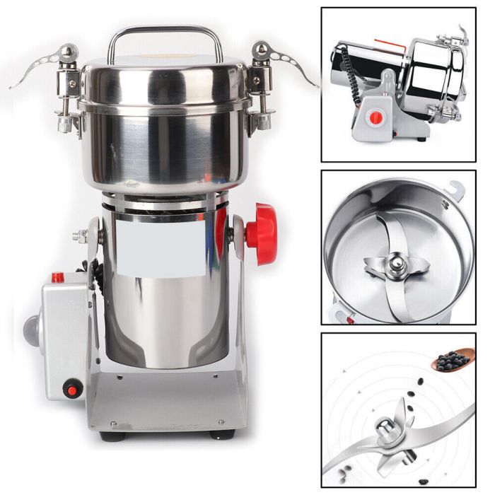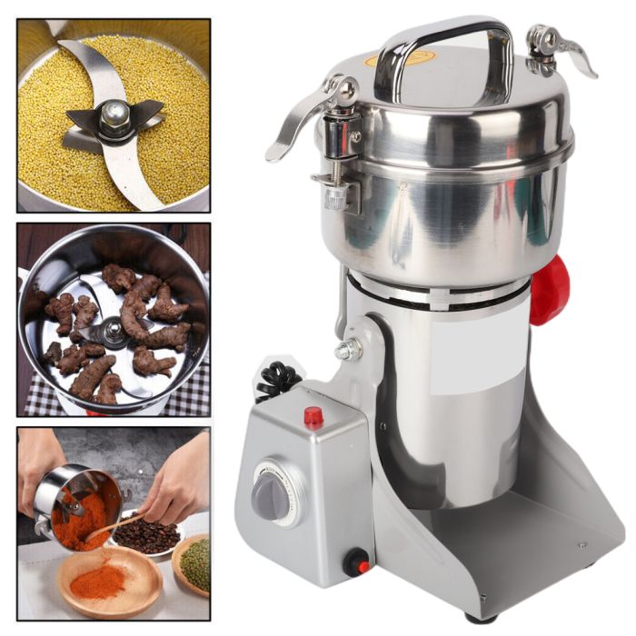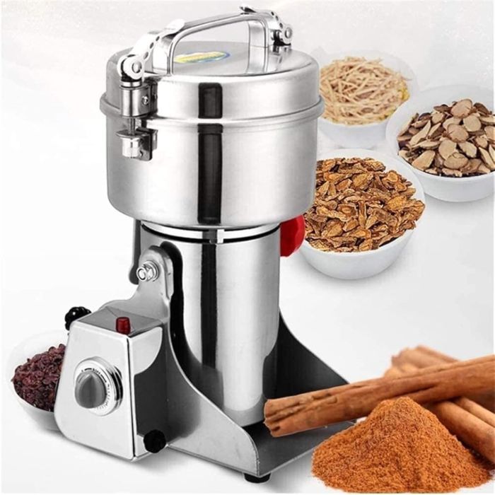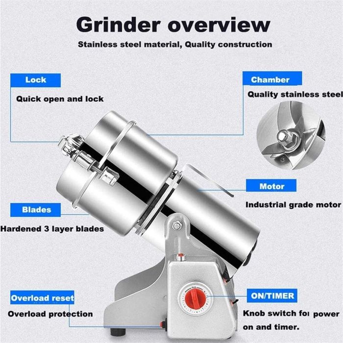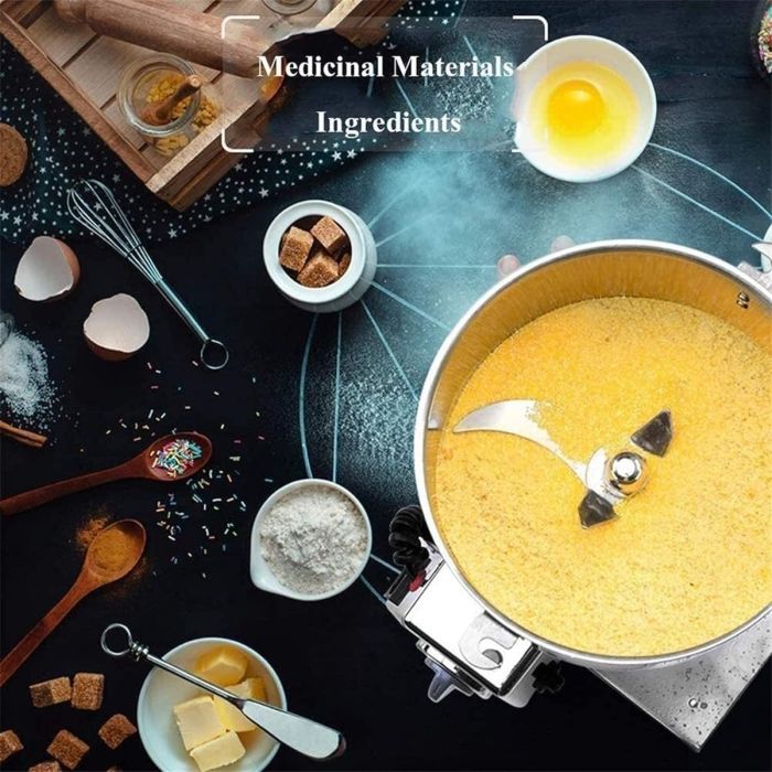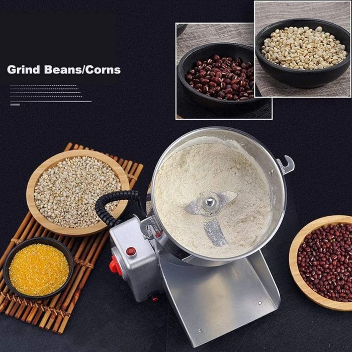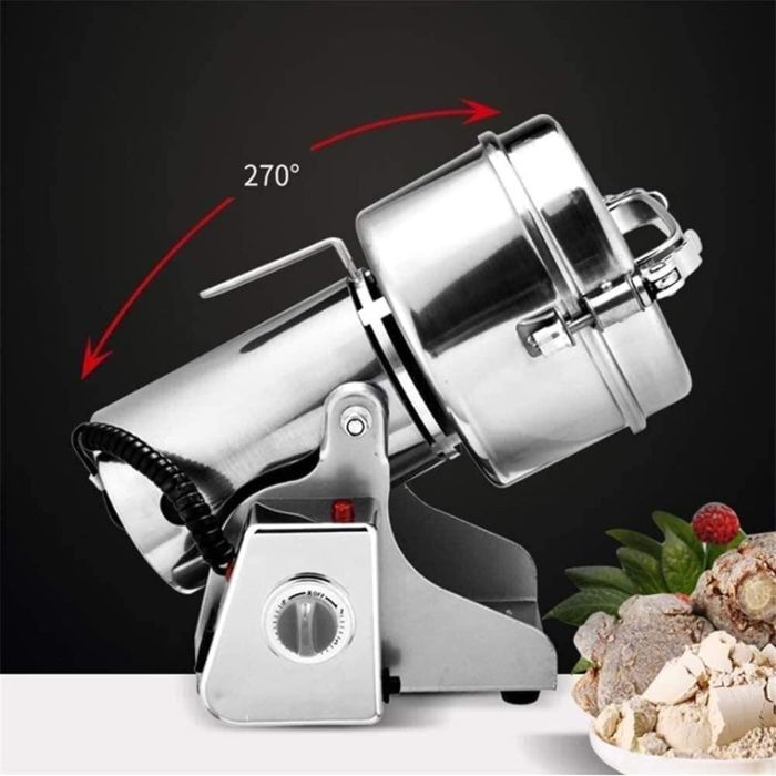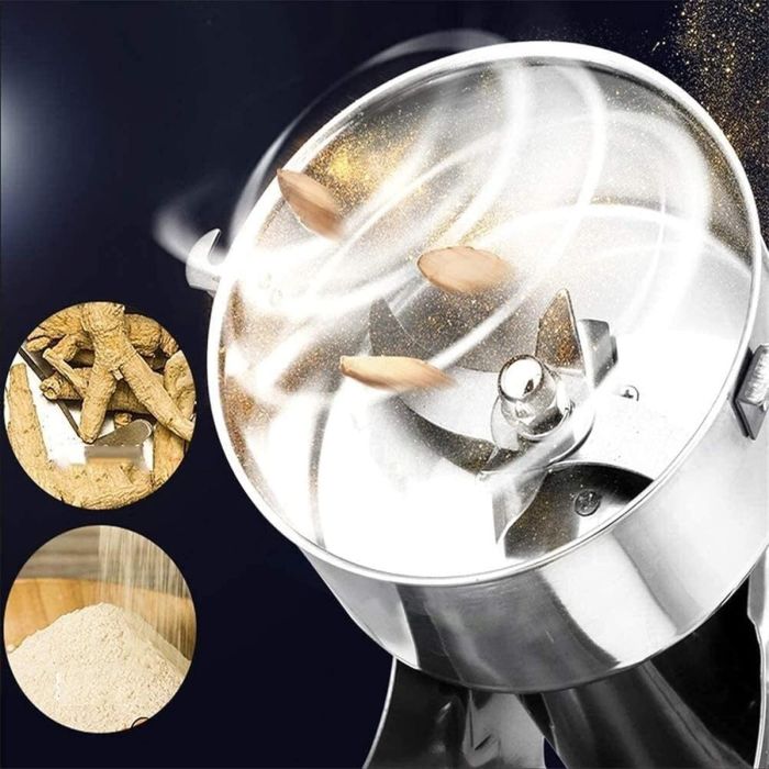 Notify meGrind almost everything from cinnamon, dehydrated food, ice, corn, sesame, soybean, fish feed, pepper, medicine (such as ganoderma, licorice, pearl) herbs and more. Powerful motor and blade that can grind even rocks within 0.5 to 3 minutes in high speed