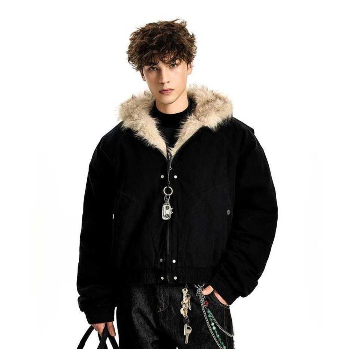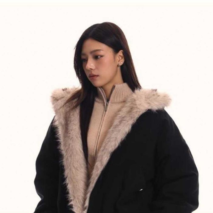 This Thick Fur Lined Hooded Jacket crafted from a warm material that provides ideal protection in cold weather, featuring a luxurious design that delivers a strong presence, offering comfort and style for daily wear with a balanced, modern look