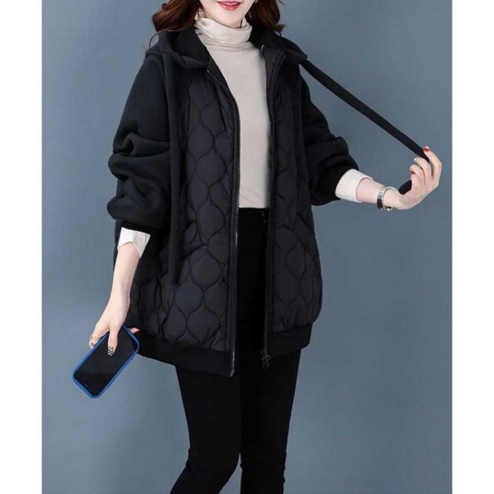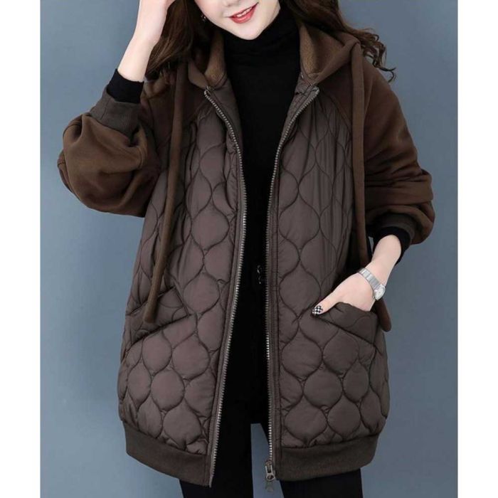 This thick hooded padded jacket for women is crafted from durable polyester fibers that deliver excellent warmth and soft comfort. The dense padding offers ideal protection in cold weather, while the hood adds a modern touch for stylish daily wear.