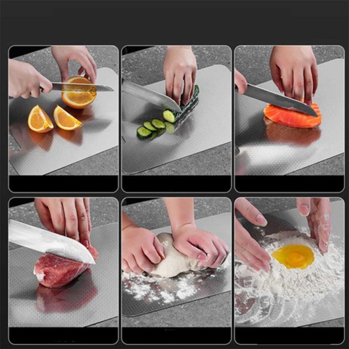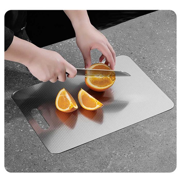 This stainless steel cutting board with a thick cellular design is crafted from high-quality materials to ensure durability and strength. It provides an ideal surface for cutting all types of food with ease and smoothness. The cellular design ensures even pressure distribution, maintaining the sharpness of knives for longer. Perfect for modern kitchens that require practical and efficient tools, it adds a touch of elegance and professionalism to the daily cooking experience.