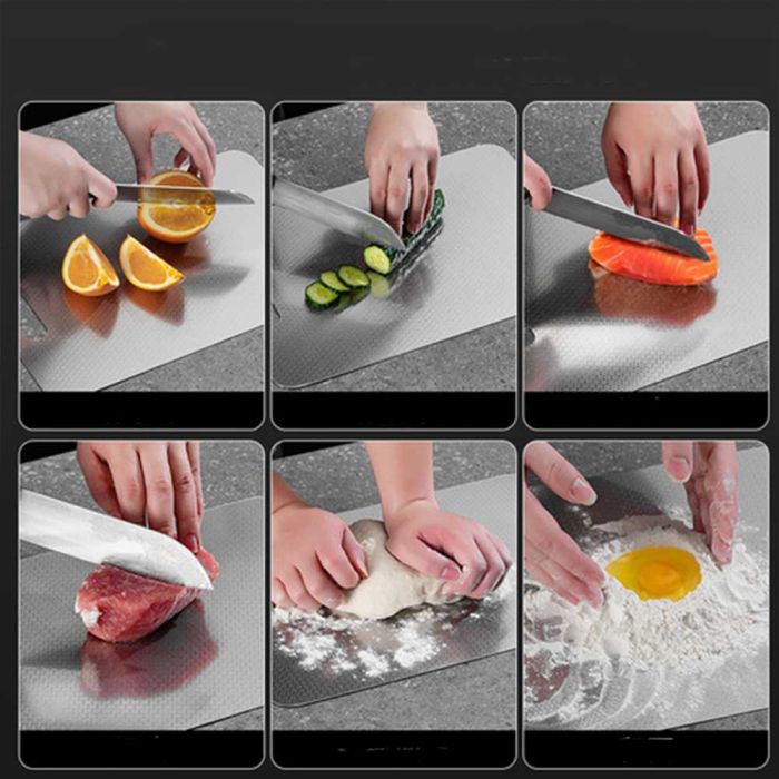 This stainless steel cutting board with a thick cellular design is crafted from high-quality materials to ensure durability and strength. It provides an ideal surface for cutting all types of food with ease and smoothness. The cellular design ensures even pressure distribution, maintaining the sharpness of knives for longer. Perfect for modern kitchens that require practical and efficient tools, it adds a touch of elegance and professionalism to the daily cooking experience.