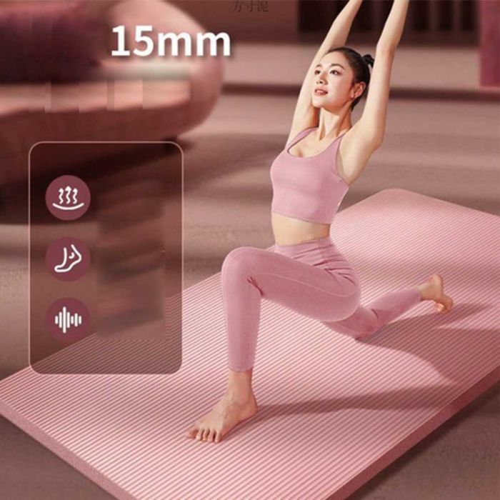 This 185 × 90 cm thick yoga mat for beginners offers comfortable support through its 20 mm high-density NBR material that reduces joint pressure, with double-sided anti-slip texture for better stability, and a wide design that provides greater movement space, making it ideal for yoga fitness stretching and balance exercises.