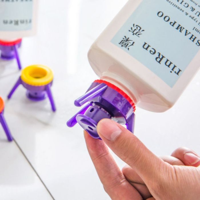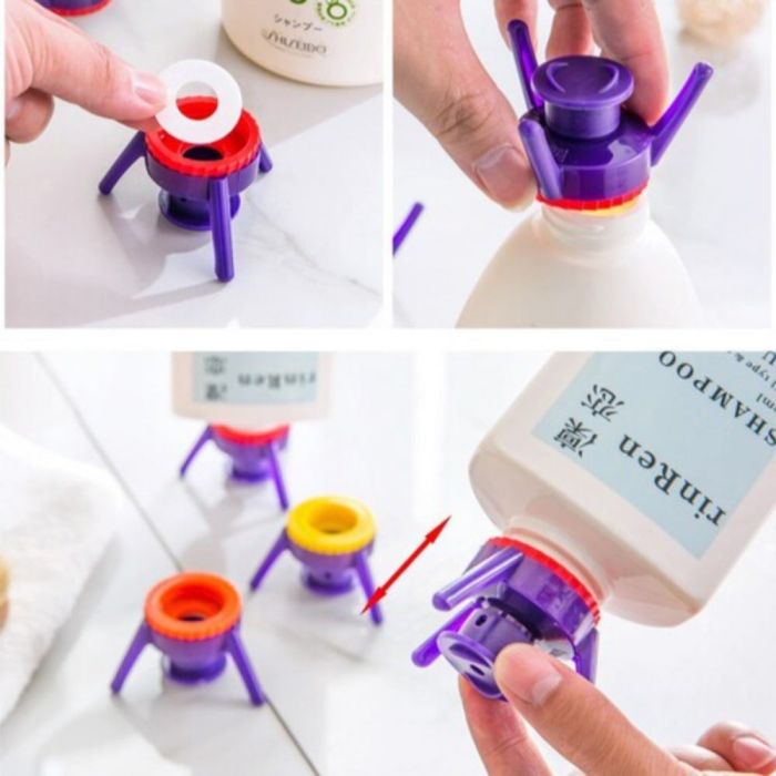 This Three piece leak proof inverted bottle cap made of durable materials, converts the bottle into an upside down position for easy use, helps dispense the contents completely, reduces waste, suitable for shampoo shower gel detergents and beverages