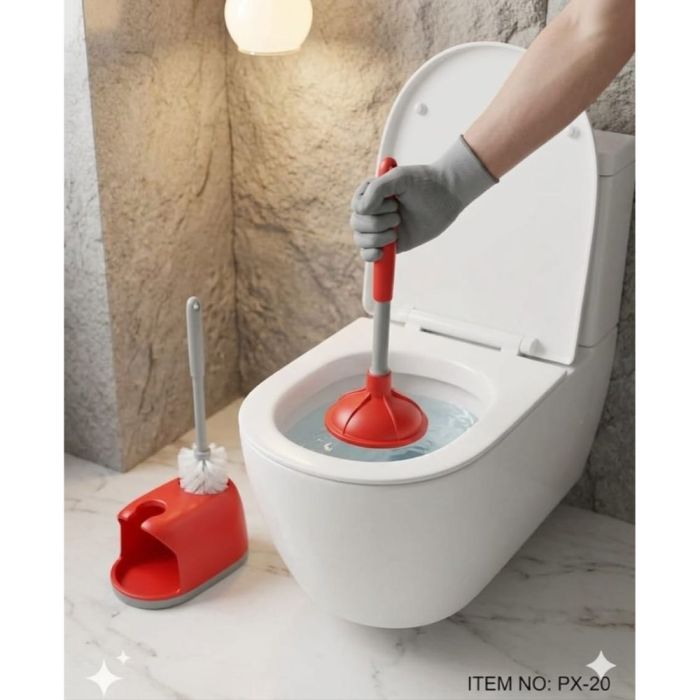 This Toilet Brush and Plunger Set with Storage Stand made of durable plastic, provides 360-degree deep cleaning, ergonomic and easy-to-use design, strong bristles reach tight areas, helps maintain toilet hygiene effectively and quickly