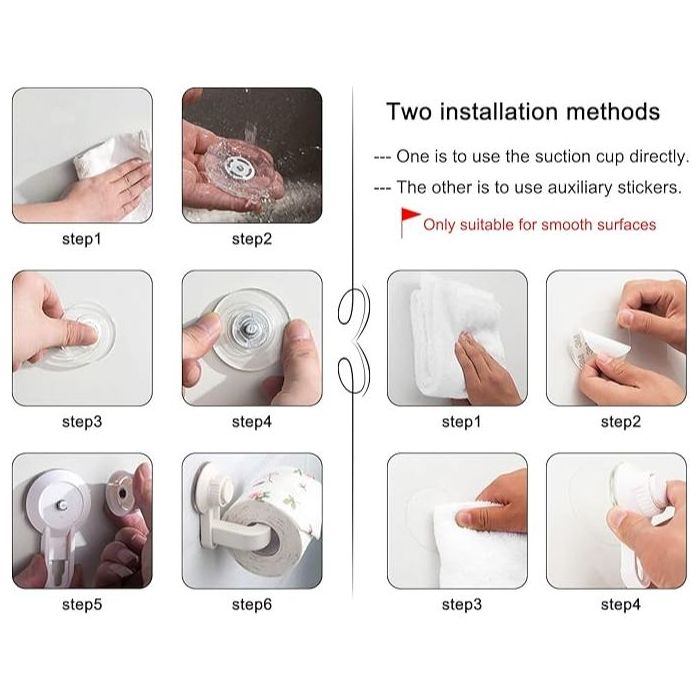 Install this toilet paper holder in seconds without any drilling. Its strong suction cup and durable design provide a clean and practical storage solution for your bathroom.