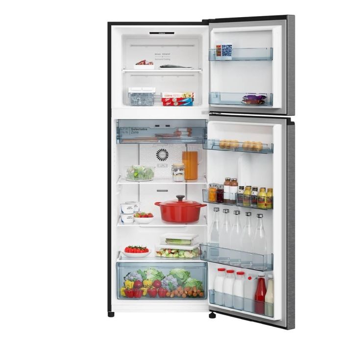 This Hitachi 409-liter top-loading refrigerator offers ample storage and optimal food preservation. It features efficient cooling technology to evenly distribute cold air. Its sleek design makes it a great addition to your kitchen, offering reliable performance and energy efficiency for everyday use.
