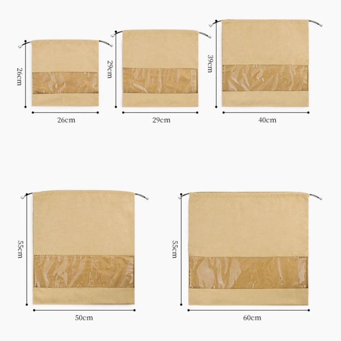 - Transparent Dustproof Storage Bags Set with Drawstring - 5Pcs