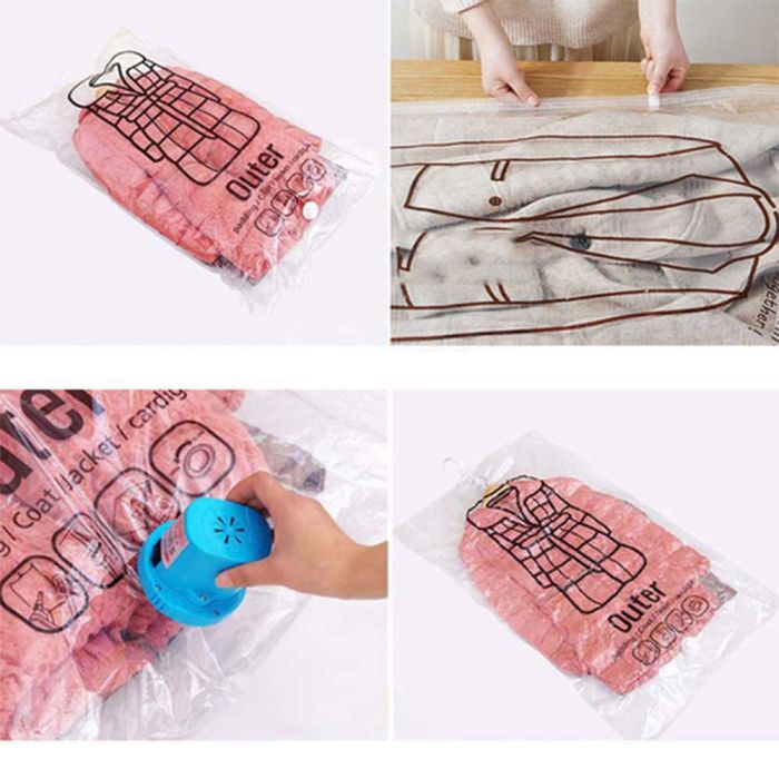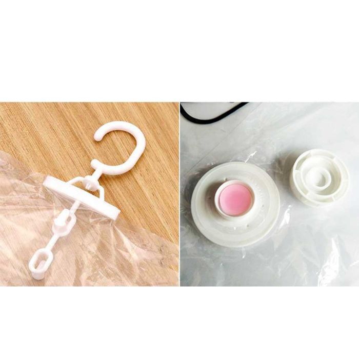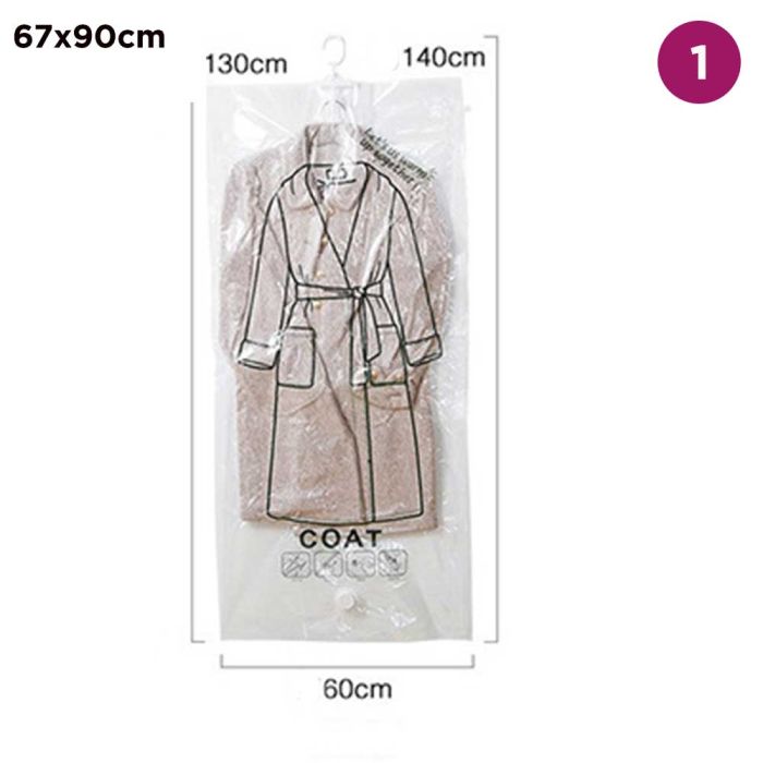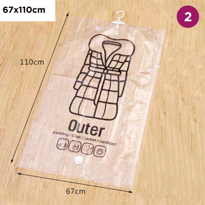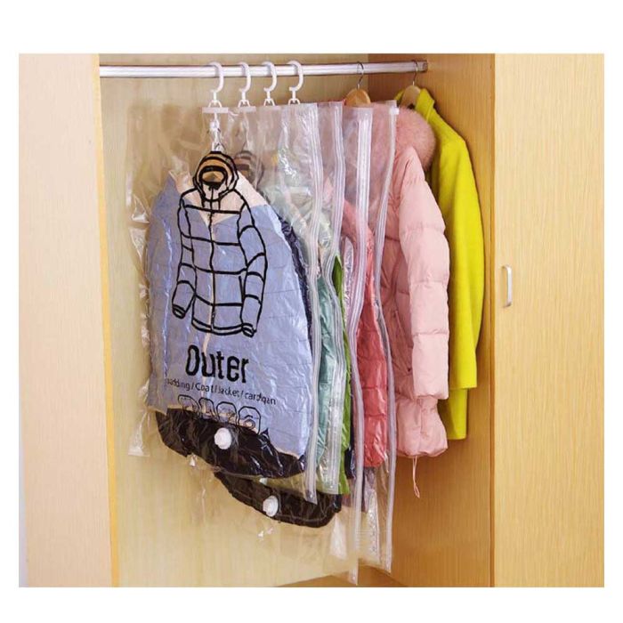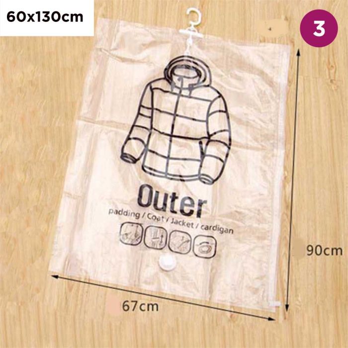 Optimize your storage with this transparent hanging vacuum bag, designed to protect clothing from dust and moisture. Its hanging feature maximizes closet space, while the clear material allows quick content visibility. Ideal for storing seasonal or long garments, this space-saving solution keeps your wardrobe tidy and garments fresh. A practical way to maintain order without clutter.