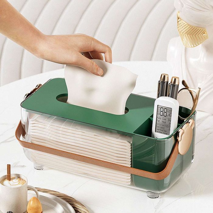 This transparent multifunctional tissue box is crafted from high-quality materials to ensure durability and practicality for daily use. It features an elegant design that adds a visually pleasing decorative touch to any living room. It offers ideal storage space for glasses and remote controls, making it the perfect choice for easy and convenient home organization. Additionally, it is suitable for both artificial and natural flowers to complement the beauty of interior decor.