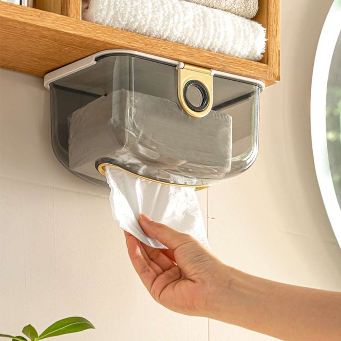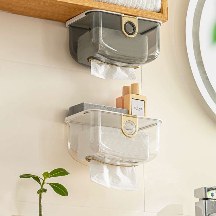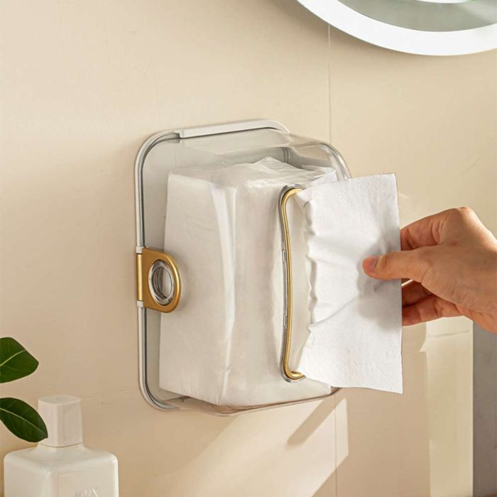 This transparent wall-mounted tissue box is made from high-quality materials, offering a practical and elegant solution for organizing tissues anywhere. Its transparent design allows for easy visibility of tissue levels, ensuring you never run out at critical times. It adds a modern touch to interior decor and is characterized by its durability and easy installation, making it the perfect choice for both homes and offices, providing you with comfort and practicality in daily use.