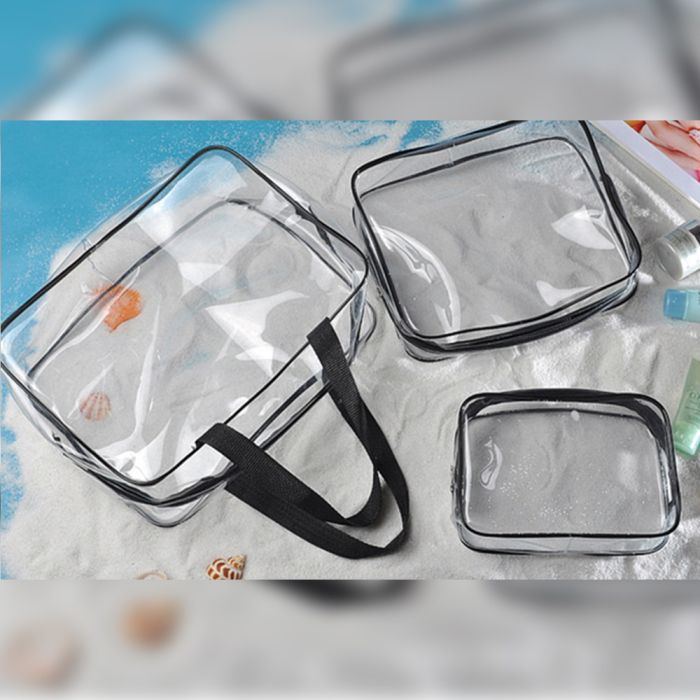 - Transparent Waterproof Makeup and Hygiene Bag 3Pcs Set