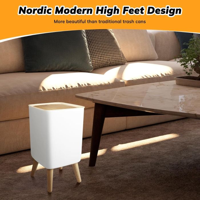 - The office trash can has a stylish Nordic style. The modern and stylish design perfectly integrates with your home environment. The charming shape and unique design make this plastic trash can both beautiful and hygienic