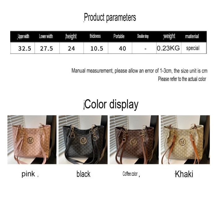 This large-capacity women's handbag features a bold, embossed monogram design, making it a distinctive and modern piece. It works perfectly as a shoulder bag or an everyday tote, combining sophisticated style with practical space for everyday essentials.Today's Deal is Trendy Letter Large Capacity ٍShoulder Bag 33 x 24 x 11 cm