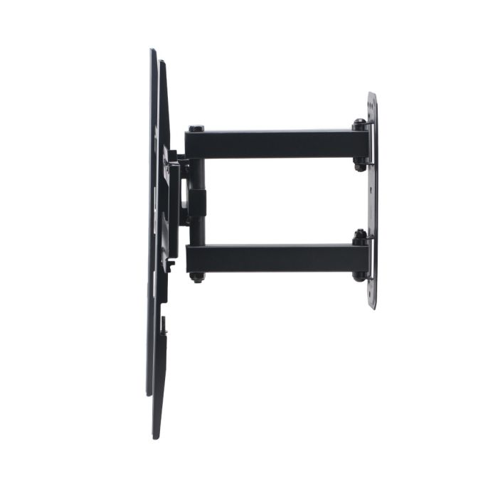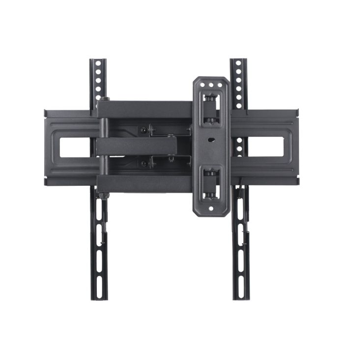 A full-motion swivel TV wall mount designed for flat and curved screens ranging from 32 to 55 inches. With a maximum load capacity of 35 kg, it ensures secure mounting on solid walls using a single stud. Its design facilitates easy and fast installation, making it ideal for home or office setups.