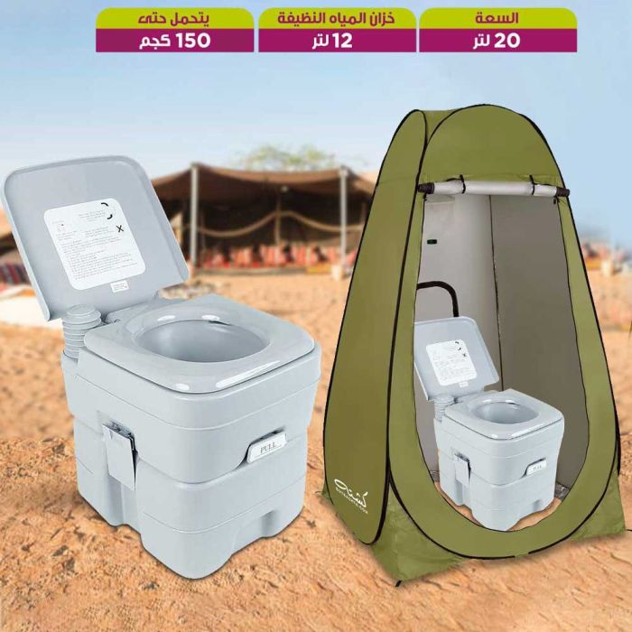 Enhance your camping and travel experiences with innovative solutions that provide comfort and privacy anywhere. The 20-liter portable toilet features double flush system for faster rinsing with less water. Its compact and lightweight design facilitates easy transport and storage, complemented by a 12-liter clean water tank and a weight capacity of up to 150 kg, making it suitable for both indoor and outdoor use by adults and children alike. For added privacy, the 120 × 120 × 190 cm tent offers a comfortable space for showering, changing clothes or using the toilet. Crafted from durable polyester, it is lightweight, easy to set up, and ensures stability in various conditions