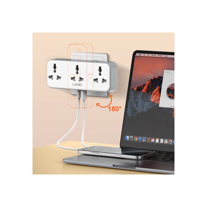 - Universal 3 Outlet Power Socket 2500W with Rotatable Plug By LDNIO