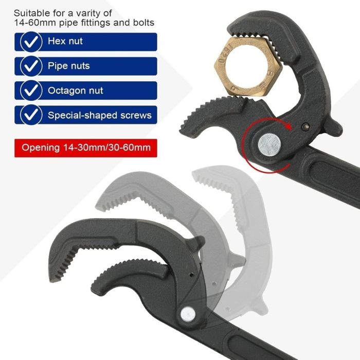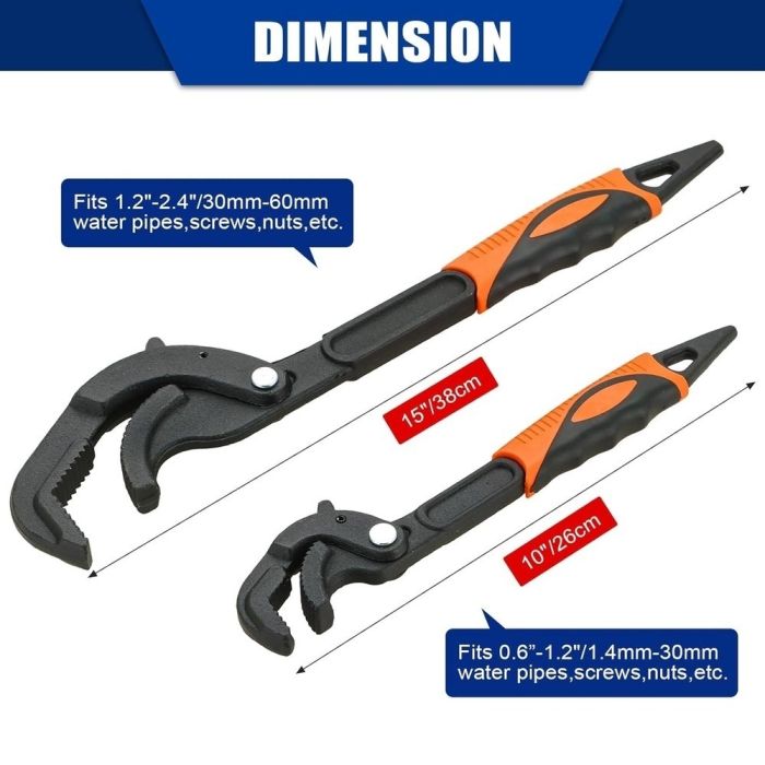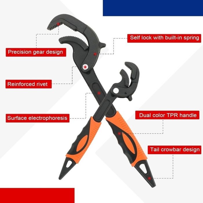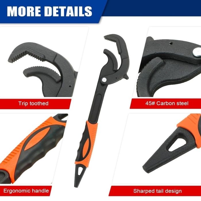 The ideal solution for loosening and tightening pipes and screws of various sizes thanks to its advanced self-locking technology. These wrenches offer tremendous grip and comfortable handles that prevent fatigue during extended use, making them an indispensable tool in the toolbox of anyone interested in plumbing and professional maintenance work.